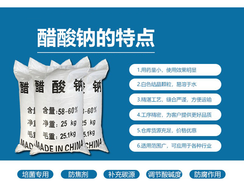 乙酸鈉又名醋酸鈉,是一中有機(jī)物,在市場上可以做為緩沖劑 媒染劑 等。乙酸鈉是一種絮凝劑,應(yīng)于工業(yè)固液分離,在化工行業(yè),肉類防腐劑 印染印刷行業(yè)等。